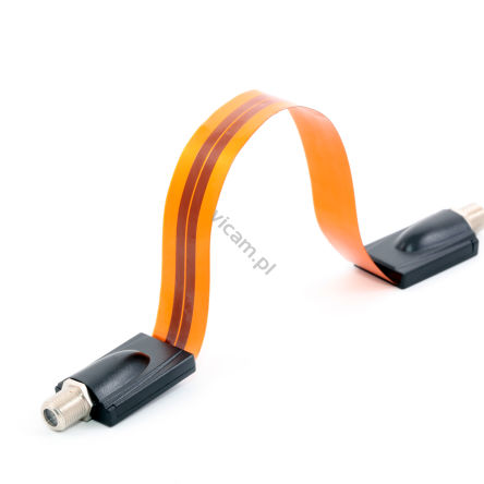 Przejściówka 20 cm umożliwiająca przejście kabla antenowego do anteny satelitarnej przez okno bez wiercenia otworów. Umożliwia łatwe wyprowadzenie kabla antenowego na zewnętrz budynku bez wiercenia jakichkolwiek dziur w ścianach czy ramach okiennych. Wystarczy wyprowadzić przez otwarte okno, a następnie po prostu je zamknąć. Ma tylko 20cm. Nigdy dotąd położenie przewodów nie było tak proste i szybkie! Obie końcówki podlepione taśmą samoprzylepną. Zalecamy to rozwiązanie szczególnie osobom, które nie chcą lub nie mają możliwości wykonywania otworów w ścianach lub framugach okien np. w wynajmowanych mieszkaniach.